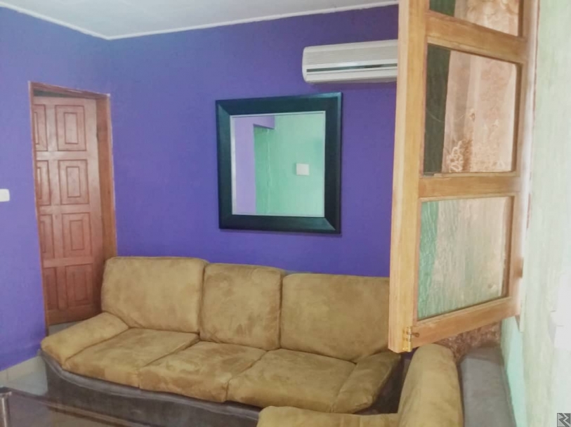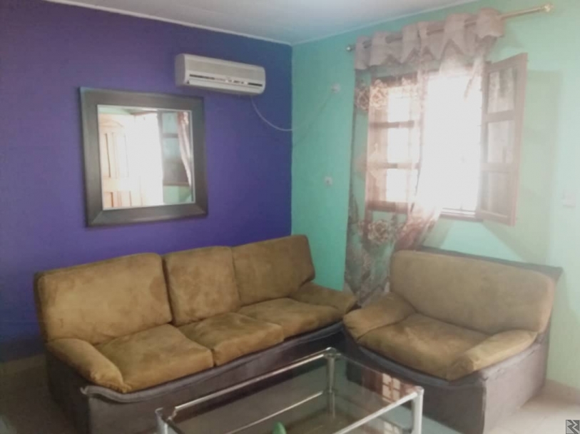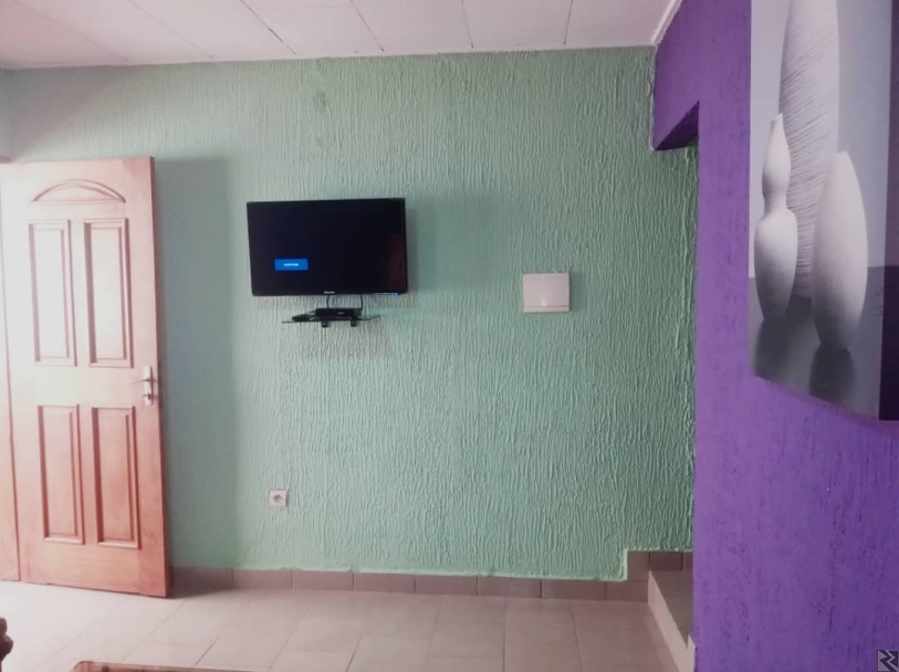 Equipement : 1 Lit, 1 Table Basse, 1 Bureau, 1 Table à repasser, Climatiseur, Microonde, 1 Réfrigérateur ; Plats et Couverts, WIFI, Canal +, Etc.